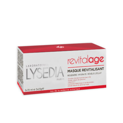 MASQUE REVITALISANT Le masque revitalisant Lysedia renforce l’hydratation, stimule la formation de collagène, active le renouvellement des fibroblastes. Format : 3 unités