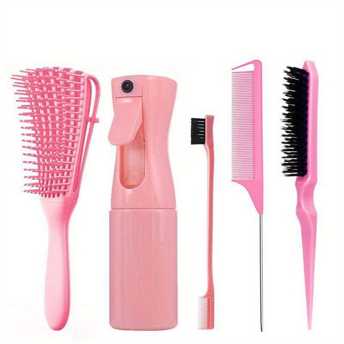 Kit de Coiffure 5 Pièces: Brosses, Vaporisateur & Brosse démêlante Peignes pour Tous Types de Cheveux Idéal pour Cheveux Bouclés & Normaux